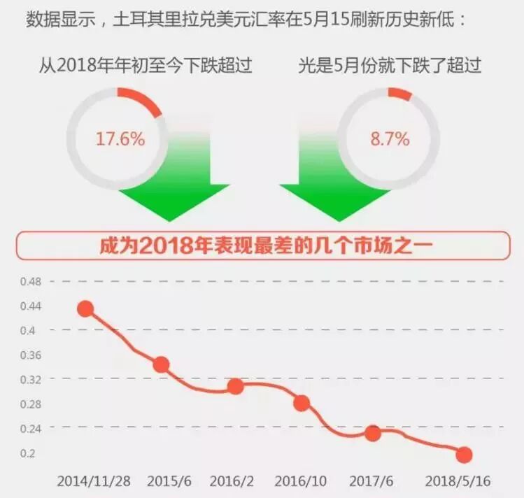 土耳其里拉兑美元汇率15日刷新历史新低,日内一度重挫2.5%,领跌新兴市场货币。今年以来里拉跌幅超过17%,仅5月至今已跌9.9%,是今年以来表现最差的货币之一。