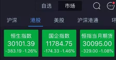 在香港市场,恒生指数今日低开1.2%,截至发稿,跌幅为1.26%,一度跌破30000点大关,为5月8日来首次;恒生国企指数早盘低开1.1%,目前跌幅也扩大至1.46%。
