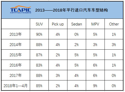 2018年1-3月,平行进口MPV份额有所提升,达到9%,SUV份额下滑3个百分点,其它车型保持相对稳定。其中,SUV车型以B、C和D级为主,C级占比超过一半,2018年一季度C和D-SUV占比相比2017年全年,均有超过3个百分以上的提升 。
