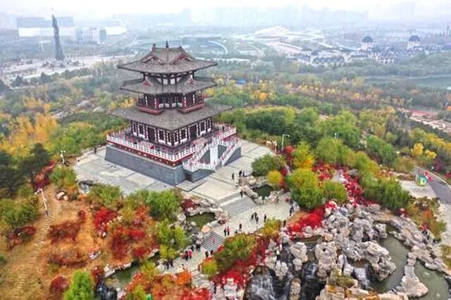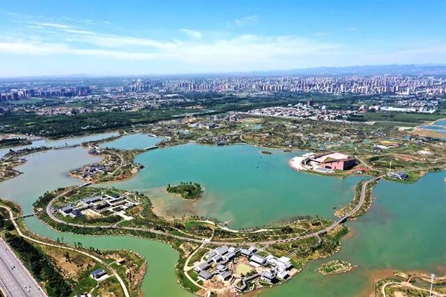 8月28日,俯瞰在昔日采煤塌陷区建起的以江南园林为主基调的邢台园博园。记者赵永辉摄(资料片)
