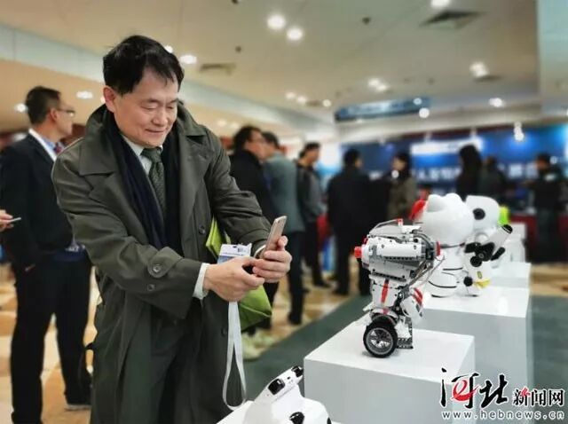 峰会与会人员对米兔积木机器人进行拍照留念。