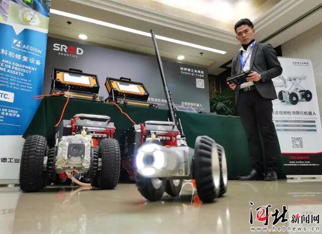 施罗德工业集团工作人员演示管道检测机器人进行作业。 翟一杉摄