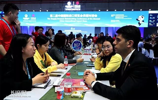 在首届进博会上,近百家河北企业参加供需对接会,经过101轮“一对一”洽谈,达成初步合作意向49对,意向达成率48.5%,企业现场签约29对,初步意向合作金额7746万美元。