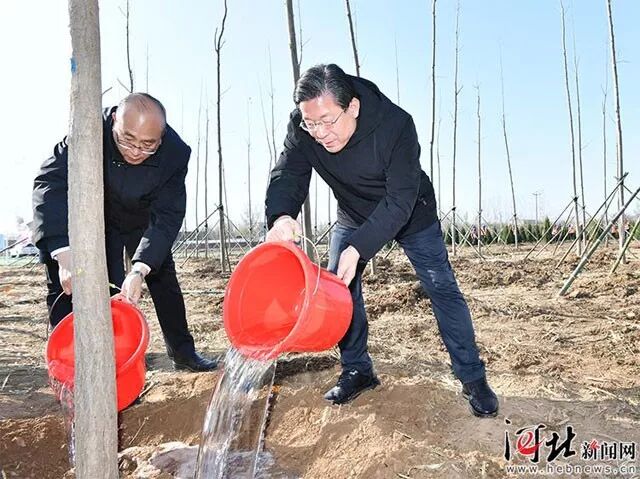 初冬时节,秋冬季植树造林进入关键阶段。在雄安新区建设者们的紧张忙碌下,全年20万亩造林任务即将全面完成。王东峰、许勤来到位于容城县贾光乡东四庄村的植树造林点,认真听取工作汇报,同广大建设者们一同植树。王东峰指出,要深入学习贯彻党的十九届四中全会精神,坚定不移坚持和完善生态文明制度体系,促进人与自然和谐共生。要科学编制雄安新区绿化规划,精心选择树木品种,按照政府主导、市场化运作原则和经济林与生态林相结合、专业队伍与群众造林相结合的模式,突出环新区林带、环白洋淀林带、路网沿线林带、城市公园、郊野公园等重点,大规模开展植树造林,实现生态效益、社会效益、经济效益共赢。