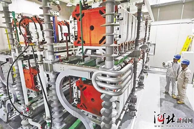 近日,工人在张北县阿里巴巴云计算数据中心查看采用当地光伏发电站供电的10千伏柔性直流变电设备的工作情况,该数据中心实实在在地使用上了绿色电能。通讯员武殿森 记者李艳红摄
