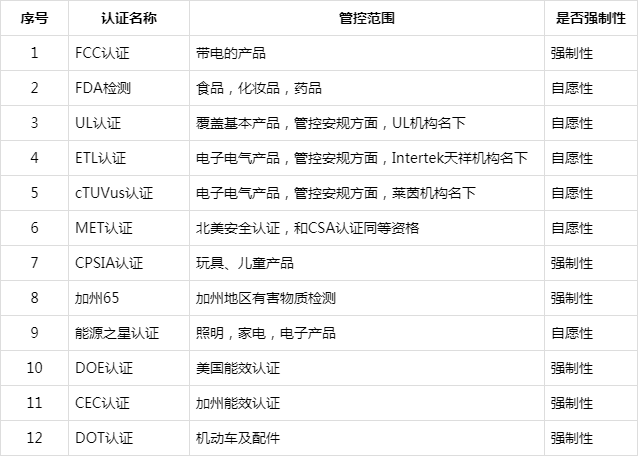 美国市场购买力需求强劲,美国市场是外贸出口最重要的市场之一。美国认证有哪些?电子产品、家电产品、照明产品、纺织品、玩具、药品、化妆品、食材器具、机动车等进入美国需要做什么认证?