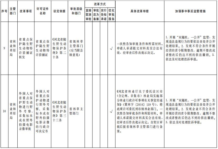 中央层面设定的涉企经营许可事项清单,各级各部门要严格落实,不得随意调整删减。河北层面设定的涉企经营许可事项清单,由河北省行政审批制度改革工作领导小组办公室按程序组织制定和统一管理。