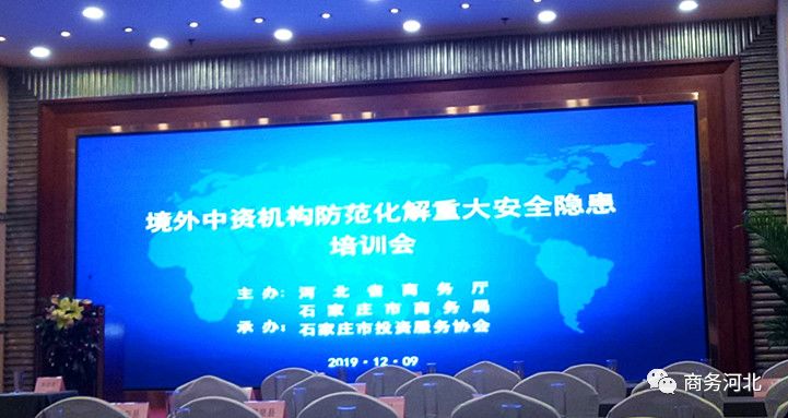 为务实推动我省企业融入“一带一路”建设,做好境外中资企业、机构安全风险防范工作,化解重大安全隐患,12月9日,由河北省商务厅、石家庄市商务局主办、石家庄市投资服务协会承办的“境外中资机构防范化解重大安全隐患培训会”在石家庄市成功举办。省商务厅、石家庄市商务局、石家庄市人民政府外事办公室相关负责同志分别从多维度对境外企业和人员安全管控以及安全防范体系建设等方面进行讲解;石家庄市商务局、江泰保险经纪公司、北京德恒(石家庄)律师事务所负责同志就企业关心的境外投资备案业务流程、企业“走出去”风险应对以及“一带一路”法律援助服务机制等进行了详尽介绍。石家庄市商务局、石家庄市发改委等市直有关部门和县(市)、区商务主管部门负责同志,以及来自全省境外投资企业及外经贸企业代表近140人参加培训。