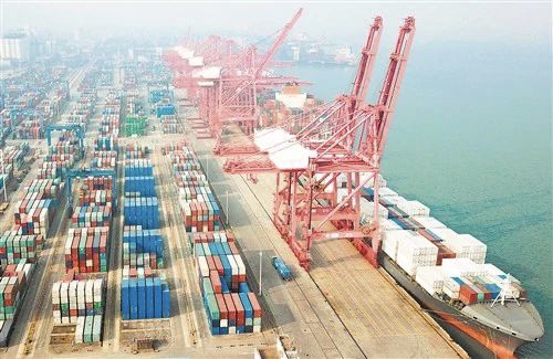 12月8日,江苏连云港港口集装箱码头一派繁忙景象。(图片来源:中国经济网)