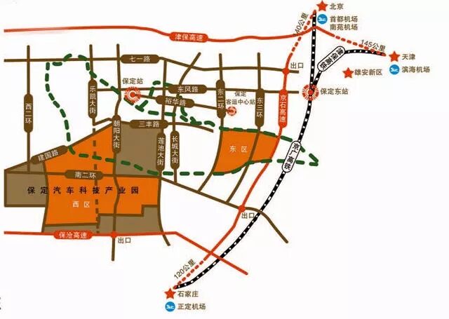 位于保定市中心城区东南部,公路、铁路四通八达,处于京、津、保“金三角“的重要节点,实现到北京、天津、石家庄的公交化联系。