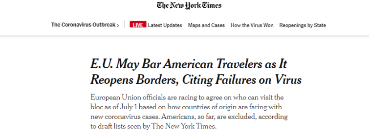 欧盟拟重开边境,美国因防疫不力或被“拒之门外”!