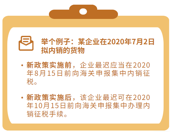 新政策实施后:对符合条件可集中办理内销征税手续的加工贸易企业,在不超过手(账)册有效期或核销截止日期的前提下,最迟可在季度结束后15天内向海关申报完成纳税手续。新政策实施后,企业准备内销征税资金的时间得到进一步放宽,内销手续进一步简化,出口转内销获得更多便利。