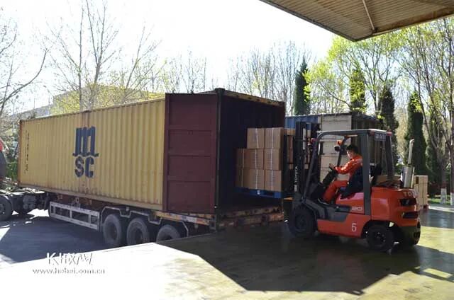 石家庄四药物流中心工人正在装车。今年一季度,石家庄四药外贸迎增长。记者胡晓梅 摄