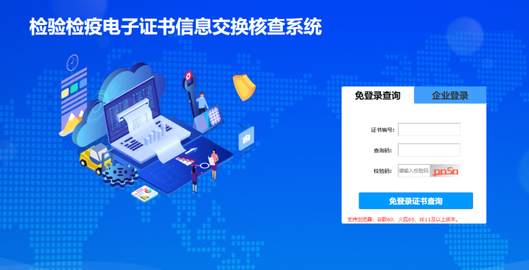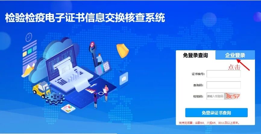 进入“检验检疫电子证书信息交换核查系统”,点击右侧的“企业登录”。
