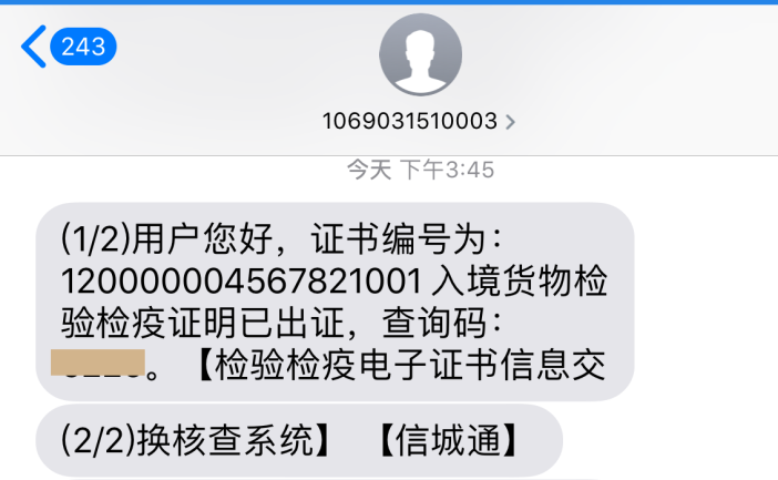 海关在签发电子《证明》后,该手机号将收到查询码。该查询码是扫描二维码查询《证明》的必要验证手段,请妥善保管并做好整理。