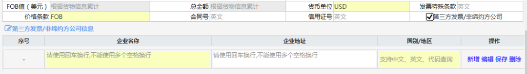 4、页面增加“非缔约方”标记选择框,非缔约方信息设置单独字段,需在专门栏目填写非缔约方信息;