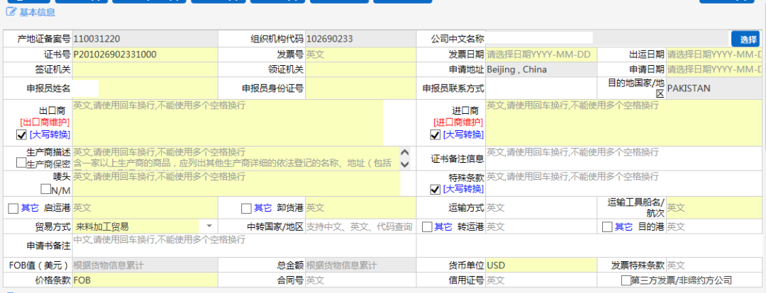 5、非缔约方打印格式调整、ECFA证书多个保密条款打印模式调整。非缔约方依照协定要求自动生成合适打印位置,ECFA证书如企业在某个生产商中录入保密条款,即使在其它生产商中录入具体企业,仍将在生产商栏目中仅打印保密条款。