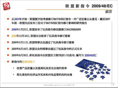 跨越壁垒 扩大出口 欧盟规定,凡是2009/48/EC覆盖的涉及安全、卫生、健康及环境保护等的产品,都必须通过相应的符合性评定程序,并加贴CE标识后方能进入欧盟市场。否则,一律不许进口、售卖。当一个产品同时被多个指令覆盖时,该产品只有在全部符合有关指令的规定后,才能加贴CE标志。 欧盟玩具安全指令即2009/48/EC,一直被认为是玩具行业目前“国际上要求最为严格的玩具安全技术法规”。相比较于前版本指令,新指令不仅对玩具的机械物理性能提高了要求,而且对玩具化学性能要求的严格程度更是前所未有,重金属的限制由8种增加为19种,限量值也大大降低,同时禁止玩具及其材料中使用55种致敏性芳香剂。目前最新版的标准如下: EN 71-1:2014 + A1:2018玩具安全性-第1部分:机械和物理特性 EN 71-2:2011 + A1:2014玩具安全性-第2部分:易燃性 EN 71-3:2019玩具安全-第3部分:某些元素的迁移 EN 71-4:2013玩具安全性-第4部分:化学和相关活动的实验装置 EN 71-5:2015玩具的安全性-第5部分:实验玩具以外的化学玩具(玩具) EN 71-7:2014 + A2:2018玩具安全-第7部分:手指画颜料-要求和测试方法 EN 71-8:2018玩具安全性-第8部分:家用活动玩具 EN 71-12:2013玩具安全性-第12部分:N-亚硝胺和N-亚硝基稳定物质 EN 71-13:2014玩具安全性-第13部分:嗅觉棋盘游戏,化妆套件和味觉游戏 EN 71-14:2018玩具安全-第14部分:家用蹦床 EN 62115:2005电动玩具-安全 关键质量安全指标:欧盟玩具安全指令即2009/48/EC规定了19种元素的检出指标,并且随着欧盟玩具安全指令进一步实施,部分指标的限量值还在进一步加严,比如在可刮下来的玩具材料中6价铬限量由0.2 mg/kg调整为0.053mg/kg。 美国消费品安全法案(CPSA)规定,儿童产品的制造商和进口商必须基于美国消费品安全委员会(CPSC)认可的实验室的测试结果,提供书面的儿童产品证书(Children’s Product Certificate,CPC),以证明其产品满足相应的儿童产品安全条例。CPC和支持的测试报告必须是英文版本。儿童产品认证必须基于美国消费品安全委员会(CPSC)认可的第三方实验室的测试结果,第三方检测实验室提供检测服务和结果,但不颁发儿童产品证书。 《消费品安全改进法案》,法案中大大降低了玩具油漆和材料中铅含量限值,并对儿童用品材料中8种增塑剂的使用进行了限制,同时提出了第三方强制认证检测的要求。为12岁以下儿童设计或为主要对象的玩具必须在消费品安全委员会认可的实验室进行第三方检测和认证,获得儿童产品证书。尽管ASTM F963-17理论上适用于供14岁以下儿童使用的玩具,但是第三方检测规定只适用于为12岁或12岁以下儿童设计并供其使用的玩具。也就是说: 如果玩具是为14岁或14岁以上儿童设计并供其使用的,则ASTM F963不适用于此玩具,无需经过第三方实验室检测。 如果玩具是为13岁儿童设计并供其使用的,则玩具仍然受ASTM F963-17管辖,但是并不要求对玩具进行第三方实验室检测(很少有玩具属于这一类别)。 如果玩具是为12岁或12岁以下儿童设计并主要供其使用,那么玩具受ASTM F963-17规定的管辖,必须由第三方实验室对玩具进行检测。 关键质量安全指标:美国《消费品安全改进法案》规定了8种可迁移元素的最大允许限量以及总铅含量限制。 美国消费品安全委员会(CPSC)于2017 年10 月27 日在联邦公报上发布了新修订的邻苯二甲酸酯最终规则(16 CFR 1307,联邦法案),2018 年4 月25 日开始执行,其覆盖范围扩大至所有儿童玩具和儿童护理用品。 将下列8 种邻苯二甲酸酯规定为永久性禁令,即邻苯二甲酸二(2-乙基己基)酯(DEHP)、邻苯二甲酸二丁酯(DBP)、邻苯二甲酸丁基苄酯(BBP)、邻苯二甲酸二异丁酯(DIBP)、邻苯二甲酸二正戊酯(DPENP)、邻苯二甲酸二正己酯(DHEXP)、邻苯二甲酸二环己酯(DCHP)、邻苯二甲酸二异壬酯(DINP),每种邻苯二甲酸酯的含量不超过0.1%。将原有的邻苯二甲酸二异癸酯(DIDP)和邻苯二甲酸二正辛酯(DNOP)从禁令中删除。 除电动玩具外,加拿大没有儿童玩具的认证或预先审批程序。电动玩具产品出口加拿大有两种认证方式:一种是认证,一种是供应商的符合性声明(SDoC)。认证,用于第I类无线电和广播设备的合格评定方案。供应商的符合性声明(SDoC)用于第II类二类无线电、广播和干扰设备的合格评定方案。 关键质量安全指标:《玩具条例》是加拿大《加拿大消费品安全法》玩具安全的主要技术法规。加拿大已经将有关玩具的具体安全要求列入到了《加拿大消费品安全法》之《玩具条例》,涉及儿童玩具在机械、易燃性、毒性、电气和发热等方面的危害。加拿大玩具(除乒乓球外)禁止使用含纤维素(赛璐珞)或者硝酸纤维素(硝酸赛璐珞);加拿大对玩具表面涂层的重金属限量做了明确的规定。详见表3。 《邻苯二甲酸酯条例》(Phthalates Regulations)是《加拿大消费品安全法》的条例之一,主要规定邻苯二甲酸酯的限量: 1)玩具或儿童护理用品中的乙烯基的邻苯二甲酸二(2-乙基己基)酯)(DEHP)、邻苯二甲酸二丁酯(DBP)和邻苯二甲酸甲苯基丁酯(BBP)每种含量每kg不得超过1000mg(0.1%)。 2)在可以合理可预见的方式被4岁(48个月)以下儿童放入嘴中的玩具或儿童护理用品的任何部分中的乙烯基的邻苯二甲酸二异壬酯(DINP)、邻苯二甲酸二异癸酯(DIDP)和邻苯二甲酸二辛酯(DNOP)每种含量不得超过1000mg/kg(0.1%)。 了解准入 增加内销 为保护国家安全、防止欺诈行为、保护人体健康或者安全、保护动植
