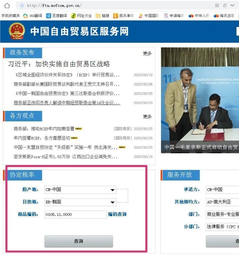 登陆“中国自由贸易区服务网”,在“协定税率查询”栏目,输入该商品的原产地、目的地和商品编码,进行查询。