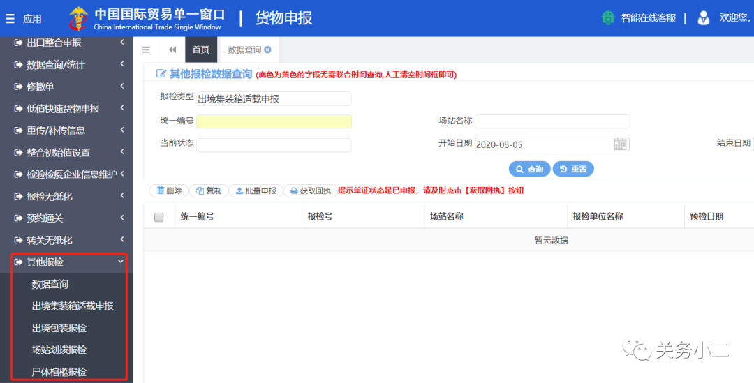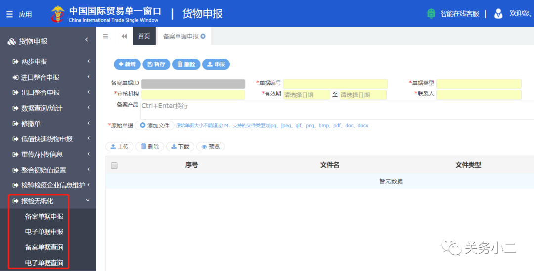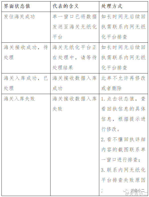 企业办理出入境检验检疫申报注意,9月11日起,全国海关全面启用海关新无纸化平台,企业需通过国际贸易“单一窗口”进行申报,其他渠道申报的无纸化随附单据,海关新无纸化平台将无法进行受理。 海关无纸化应用支撑平台切换至单一窗口常见问题 1.新企业如何申请开通报检无纸化功能? 管理员账号登录单一窗口后,在管理员信息--我的资质中--填写报检单位注册号;如未绑定,系统会提示“请绑定报检注册号再继续操作!”。 单一窗口管理员信息地址: 2.包装和集装箱适载检验业务如何上传随附单据? 包装和适载检验既可以在业务申报界面上传随附单据,也可以在通过点击菜单“报检无纸化”-“电子单据申报”,点击按钮“其他电子单据申报”打开的界面中选择对应“业务类型”,输入报检号进行上传。 3.单一窗口申报界面没有更改撤销功能,企业如何办理改撤单业务? 目前系统里暂时没有该项功能,单独入境检验检疫、出境检验检疫、包装、适载检验撤销申请需携带相关材料到各关区前台办理,通过e-CIQ完成,具体流程请咨询各关区综合业务部门。 4.随附单据需要异地备案吗? 海关无纸化应用支撑平台已实现了数据大集中,企业不需要异地备案了。 5.关于备案单据、核销单据的引用 对于企业想多次引用或者多次核销使用的单据,企业可以先进行申报备案单据,当类型为非核销单据时,不用填报商品表体信息;类型为核销单据时,必须填报商品表体信息,此时hs编码必须录入,假如不知道实际编码可以录入相近商品编码,数量一栏可按原单据的计量单位进行填写,无需根据界面上的单位进行转换。 在电子单据申报时可以引用备案单据或者核销单据,详细操作见操作手册。 6.怎么对于同一票报检单进行修改、补充上传随附单据? 当申报单据状态为可修改(暂存、发往海关失败、海关入库失败、退单)的情况下企业可以选择原单修改补充上传再申报;也允许对于同一票报检单进行多次申报随附单据,即新增电子单据申报重新录入同样的报检号进行上传附件申报。 7.对于电子单据申报后各种状态的解读及处理方式: 8.关于单据编号 备案单据里面单据编号不允许重复,是企业自行编写的,一般是单据上的证书编号;假如申报信息错误想重新申报建议编一个其他单据编号,比如年月日-序号:20200815-01;或者联系海关关员给与退单回执,进行原单修改重报。 电子单据里面单据编号由系统自动生成,企业无需手工输入。 9.系统目前不支持附件的预览功能。 10.关于两步申报内网没有返回报检号,企业无法关联上传附件的问题 选择菜单“报检无纸化”-“电子单据申报”,点击按钮“其他电子单据申报”,进入“电子单据录入”页面后,“报检号/报关单号”一栏可以输入两步申报入境报关单号,进行关联上传附件。