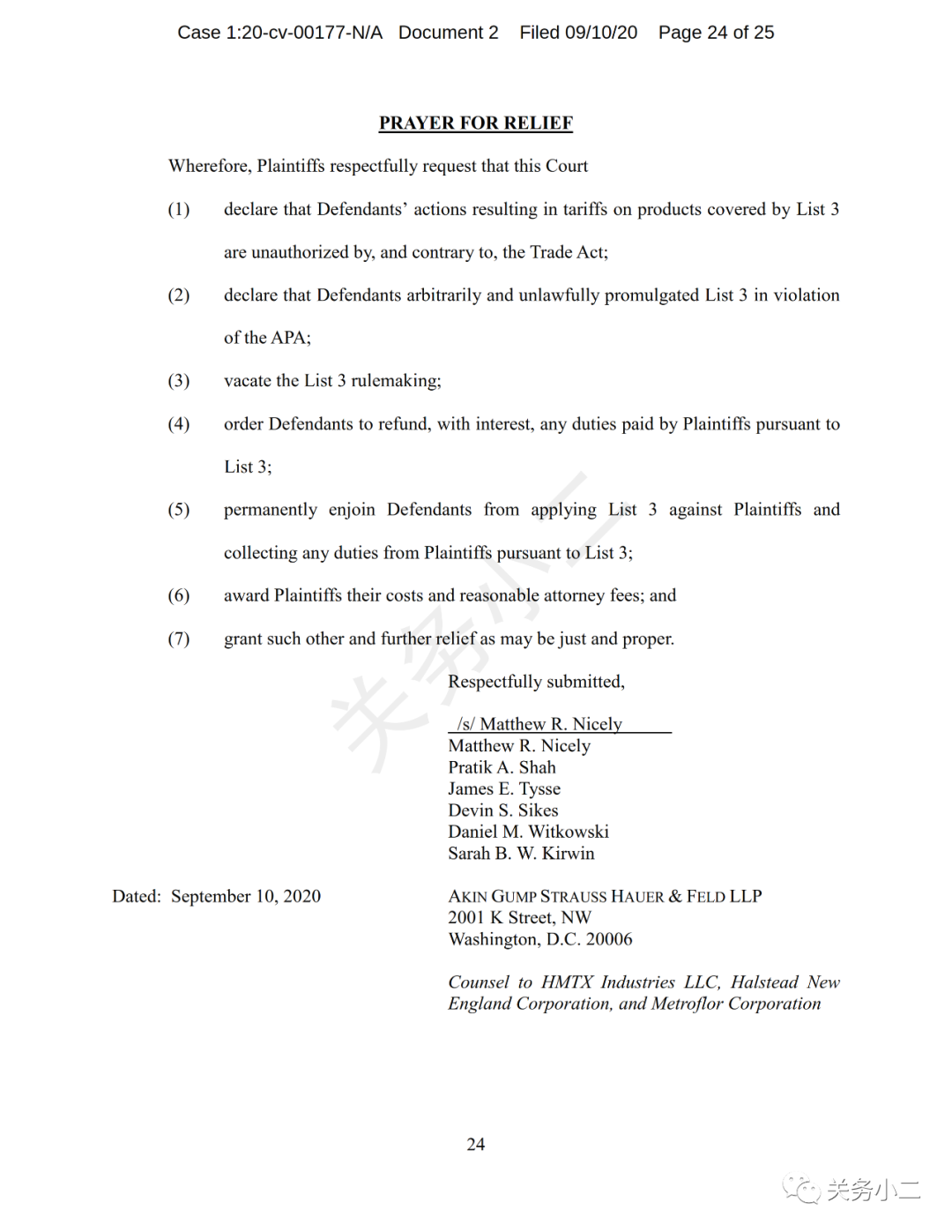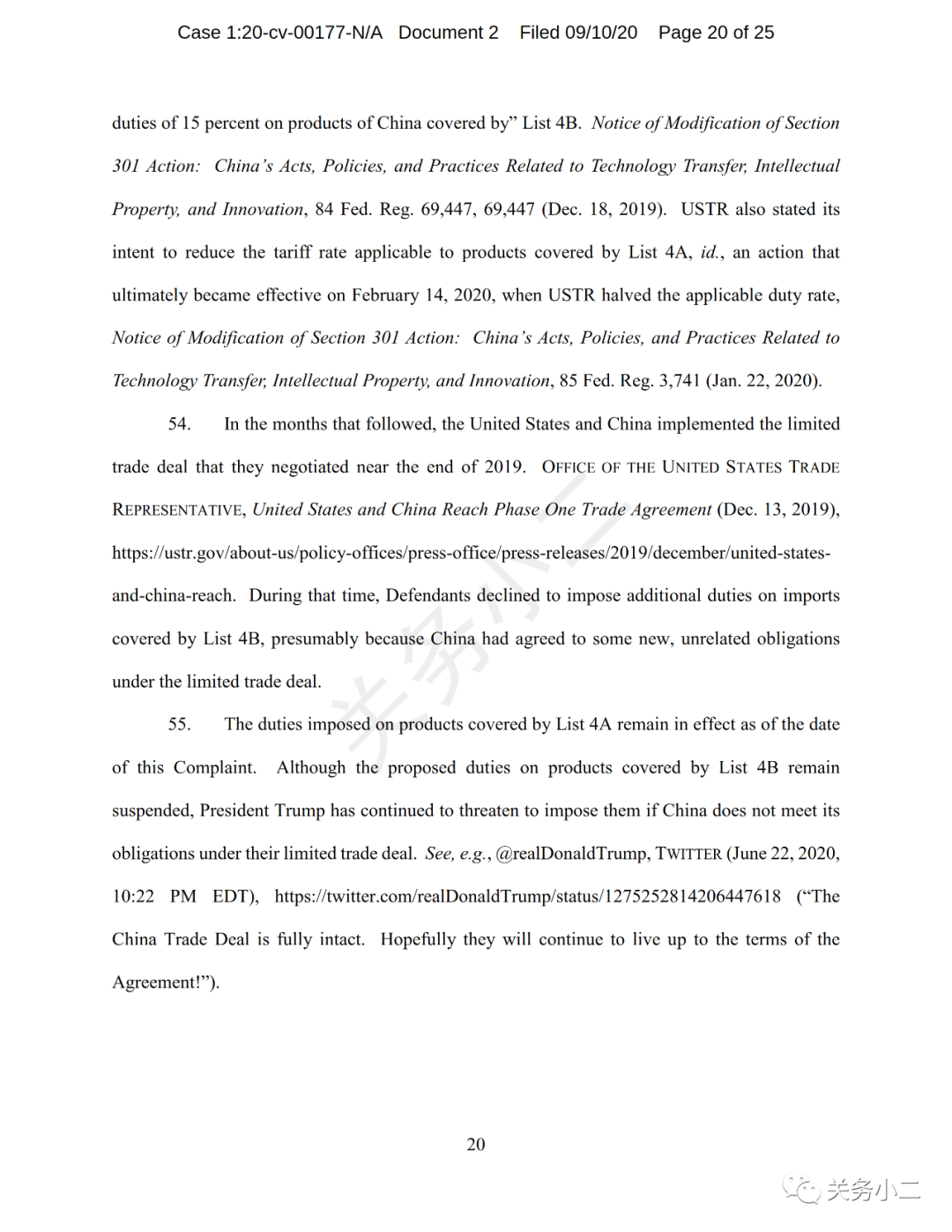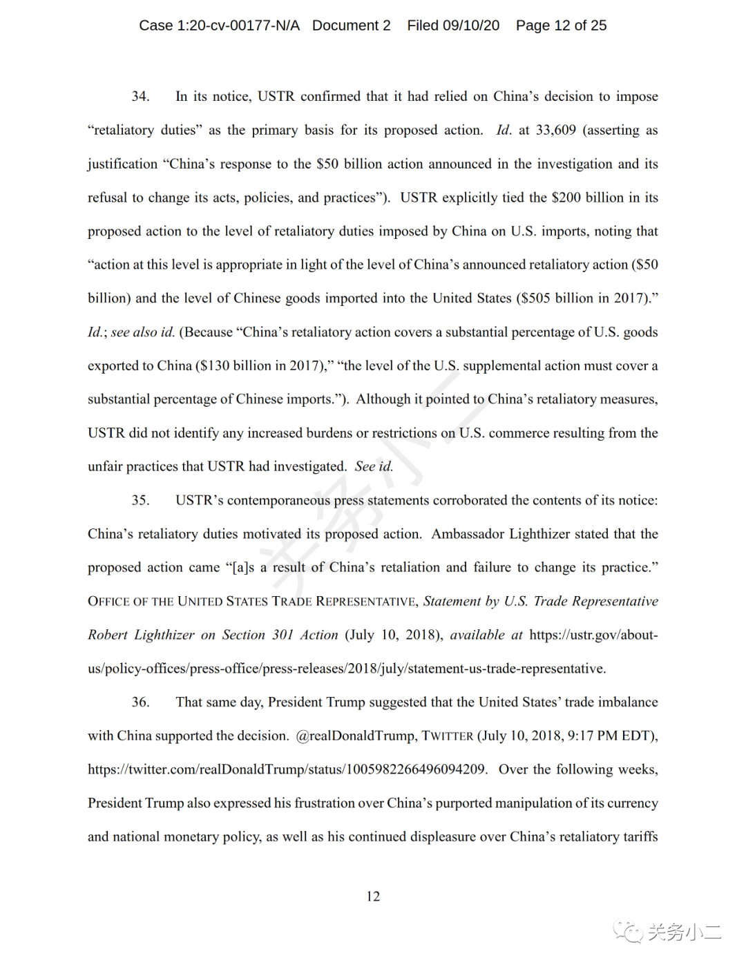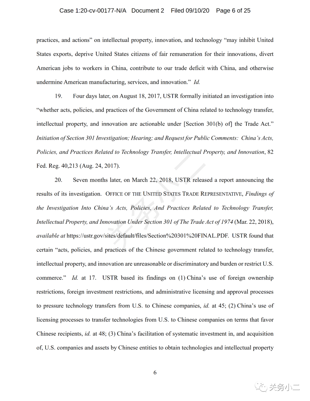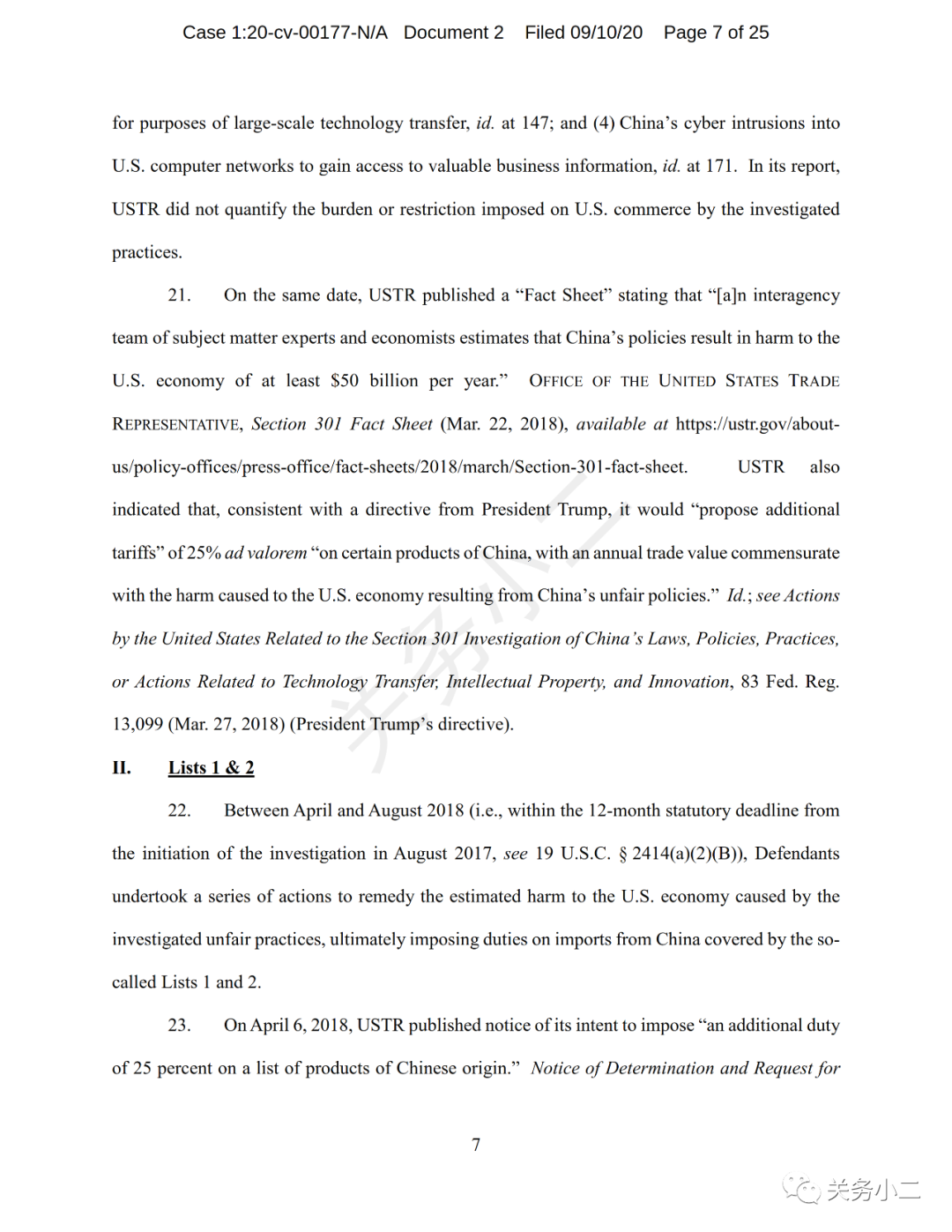 2020年9月10日,美国进口商(HMTX Industries LLC)在国际贸易法院(CIT)向美国贸易代表办公室(USTR)和美国海关(CBP)提起了诉讼,质疑USTR在301关税措施中针对中国商品采取的行动,尤其是加征关税清单3和4A(即美国2000亿和3000亿加征关税清单),已超过其职权范围。