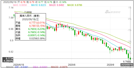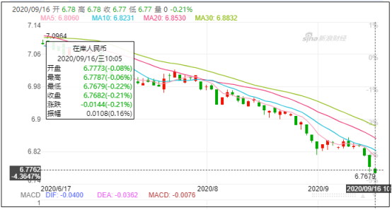 截至9月16日,离岸和在岸人民币对美元即期汇率,均较5月末反弹4000基点左右,幅度超过5%;均较2019年末反弹2000基点左右,幅度近3%。