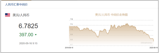 昨日,人民币对美元中间价报6.7825,较前一日相比人民币升值397个点,是2019年5月13日以来新高。