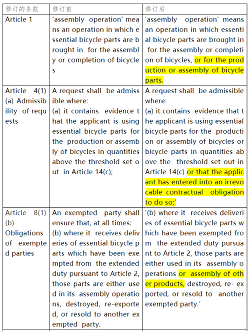 欧委会修改自中国进口自行车 零部件的反倾销税豁免规定