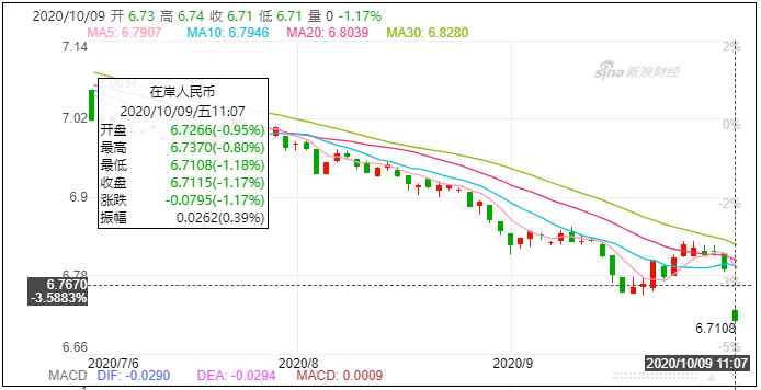 人民币在今年三季度走出了12年来最强的单季走势,在岸人民币升幅达3.8%,离岸人民币升幅逾4%。 离岸人民币大涨超800个点 在国庆长假期间,尽管全球市场波动,但离岸人民币对美元仍是大涨。 30日离岸人民币收盘报6.7811,截止10月9日11时左右,离岸人民币对美元最低报6.6982,大涨超800个基点。 9日,在岸人民币兑美元也大涨近800个基点,最低报6.7108,在岸市场人民币对美元在国庆前收于6.7909,创去年4月以来新高。 长假开始至今,美元指数从近94的位置小幅降至93.5附近。截止昨天10时左右,美元指数已降至93.48。 10月7日,特朗普在叫停美国财政刺激方案谈判之后,又发文概述了一系列他愿意签署的刺激措施,前提是它们独立于更广泛的讨论并单独通过。其中包括:针对个人的1200美元现金发放;针对航空公司的250亿美元以支持就业岗位;1350亿美元用于针对小企业的薪资保护计划。 受此原因影响,当日美元指数先涨后跌。 11月前,交易员预计美元暂难实质性走弱。“价格在93.65附近徘徊,之后11月前后大概率会小幅上涨,但94作为阻力依然有效。” 尽管市场在大选前仍看多美元指数,但“弱美元”是主流机构的中长期基本预测,原因有地缘政治摩擦暂时未见进一步升级、美国财政赤字情况恶化以及零利率持续等。 多方面因素支撑人民币走强 人民币一路大涨究其原因 一是美国新一轮财政刺激计划迟迟未能落地,大幅削弱金融机构对美国经济持续复苏反弹的预期,驱动他们持续加仓人民币资产避险; 二是中国经济率先摆脱疫情阴霾实现明显反弹,令国际资本看好人民币资产的收益性与安全性。 三季度以来,经济基本面、利差优势一直在支撑人民币走强。鉴于中国疫情防控得当,至今并未出现二次大规模暴发,因而上述优势仍在持续巩固强化。 鉴于消费复苏存在滞后,中国的增长复苏在很大程度上取决于制造业、出口和投资。今年1-8月固定资产投资累计增长为-0.3%,基本将一季度的大幅负增长消化掉;基建投资增速跑赢整体固定资产投资增速,继前7个月累计增速正增长后,前8个月累计增长达2%。 此外,今年二季度以来中国异常强劲的出口态势也有望延续,由于海外对防疫相关产品和电子产品的需求上升,以及在解除封锁后全球需求持续复苏,9月出口态势将继续向好,预计出口同比增长8.1%。 在此背景下,国际投资者正加速增配人民币资产。根据国际货币基金组织(IMF)日前发布的“官方外汇储备货币构成”数据,今年二季度,人民币占比稳步上升,由今年一季度的2.02%升至2.05%,为2016年四季度IMF报告该数据以来的新高。 分析人士称,短期来看,进入四季度,影响汇率变动的因素繁多,而且市场遇到突发事件往往发生短期超调,预计人民币汇率一定程度上将以宽幅波动为主。放眼中长期,在稳健的经济基本面及货币政策取向引导下,人民币仍有升值动力。 “中国国债将被纳入富时罗素WGBI指数的消息对人民币构成利好,这将会在正式纳入后的12个月内吸引1400亿美元资金流入。同时中美利差处于10年多来的新高,这会吸引更多资金流入。” 渣打称,正常情况下,人民币在2021年上半年前或升值至6.4-6.5。 中山证券首席经济学家李湛认为,一方面,人民币汇率升值有利于增加人民币的国际购买力,促进进口,以及增强人民币资产的国际配置吸引力,促进中国资本市场的国际化。 但另一方面,在中国产品正处于价值链向更高附加值、产业链向中高端升级的过程中,人民币汇率升值可能会影响中国产品国际竞争力的提升。