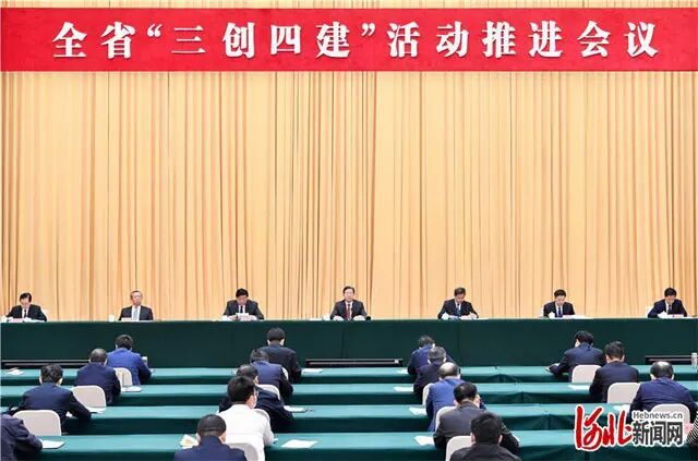 王东峰强调,要坚持加强组织领导和压实工作责任,严格考核问责抓落实。强化上下联动,严格落实各级党委政府主体责任、党政主要领导第一责任人责任和分管领导直接责任,充分发挥各成员单位和职能部门作用,压实责任抓落实。强化改革创新,在与时俱进、创新方法、舆论引导上下功夫,典型示范抓落实。强化攻坚克难,发扬斗争精神,完善督导检查和考核评价机制,转变作风抓落实,推动“三创四建”活动深入扎实开展,为新时代全面建设经济强省、美丽河北作出新的更大贡献。