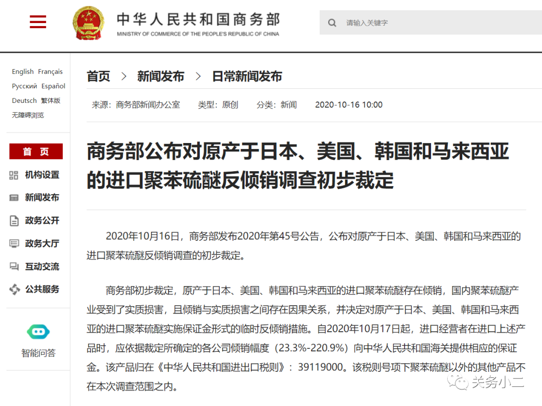 附件:商务部关于原产于日本、美国、韩国和马来西亚的进口聚苯硫醚反倾销调查的初步裁定.docx(点击文末“阅读原文”下载附件。)