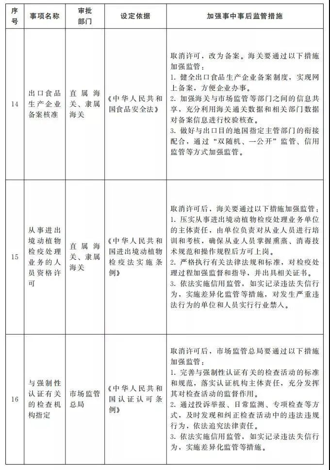 根据《国务院关于取消和下放一批行政许可事项的决定》(国发〔2020〕13号),“出口食品生产企业备案核准”取消许可,改为备案。为做好取消行政许可事项的贯彻落实和后续监管衔接工作,加强事中事后监管,现就有关事项通知如下: