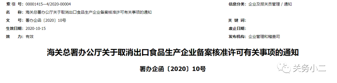 “出口食品生产企业备案核准”行政许可正式取消啦