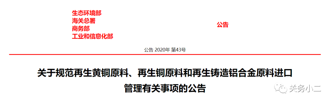 生态环境部 海关总署 商务部 工业和信息化部公告2020年第43号