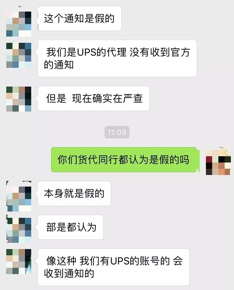 今天还有很多客户咨询以下这个通知是否真实。消息是假的!假的!假的!事实是某一非法代理,不正确按照海关要求,违规操作,导致账号被海关列入黑名单。故提醒各位客户朋友,请用正规官方渠道走件,使用自己的UPS账号,保证货物安全!