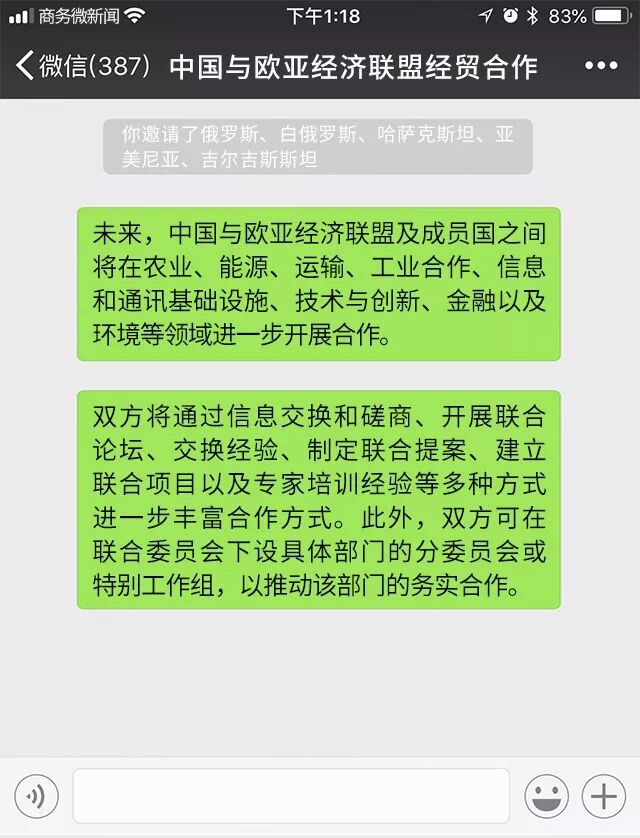 2016年6月25日《中国与欧亚经济联盟经贸合作协定》谈判正式启动。
