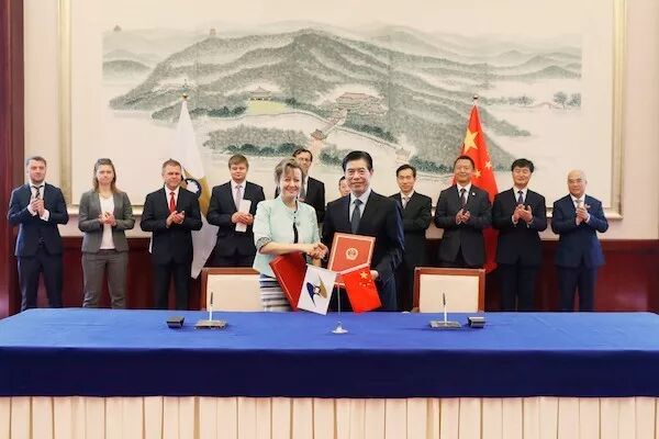 2018年5月17日哈萨克斯坦阿斯塔纳经济论坛期间,中国商务部国际贸易谈判代表兼副部长傅自应与欧亚经济委员会执委会主席萨尔基相及欧亚经济联盟成员国代表,共同签署了《中华人民共和国与欧亚经济联盟经贸合作协定》(以下简称《协定》)。