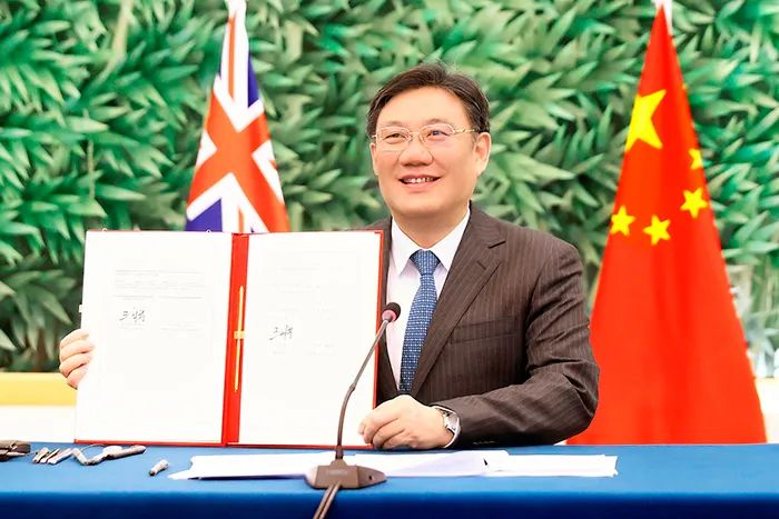 1月26日,商务部王文涛部长与新西兰贸易和出口增长部长奥康纳分别代表两国政府,通过视频方式正式签署《中华人民共和国政府与新西兰政府关于升级的议定书》。(来源:商务部新闻办公室)