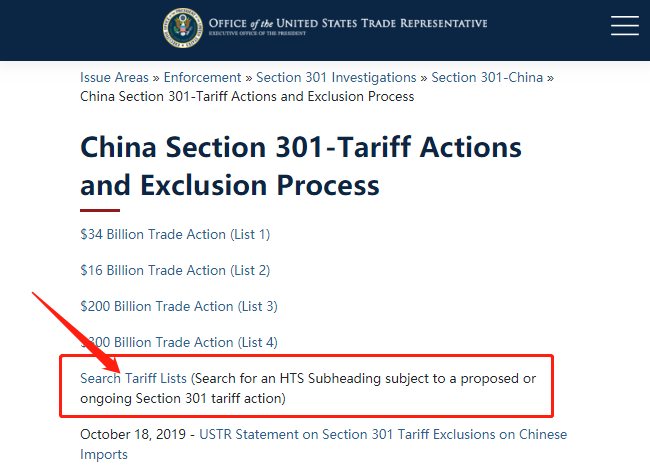 为保证准确性和权威性,我们在USTR的官网上进行查询。