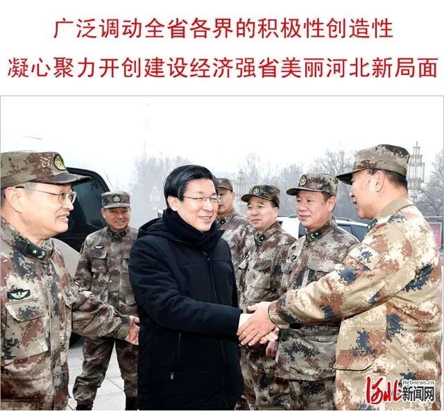1月17日下午,省委书记、省人大常委会主任王东峰在保定市走访慰问驻冀部队官兵、先进典型和退役军人,代表省委、省政府,向大家表示节日问候,致以崇高敬意。他强调,要深入学习贯彻习近平总书记重要指示精神和党中央决策部署,广泛调动全省各界的积极性创造性,凝心聚力开创建设经济强省、美丽河北新局面。