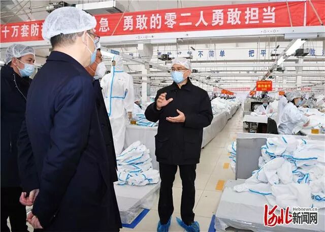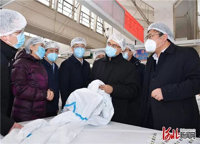 2月5日,省长许勤到石家庄市井陉县,调研检查新型冠状病毒感染的肺炎疫情防控工作。这是许勤来到际华三五零二职业装有限公司,详细了解原材料采购、生产储备、产品检测、交通运输等情况。