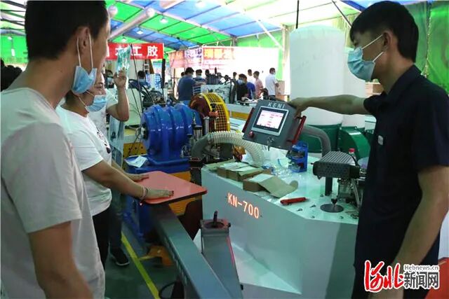 6月16日,第23届中国(胜芳)全球特色定制家具国际博览会暨第10届胜芳国际家具原辅材料展开幕。图为机械展现场。通讯员邢亚南摄