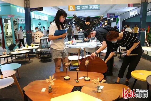 6月16日,第23届中国(胜芳)全球特色定制家具国际博览会暨第10届胜芳国际家具原辅材料展开幕。图为采购商在查看商品。通讯员邢亚南摄