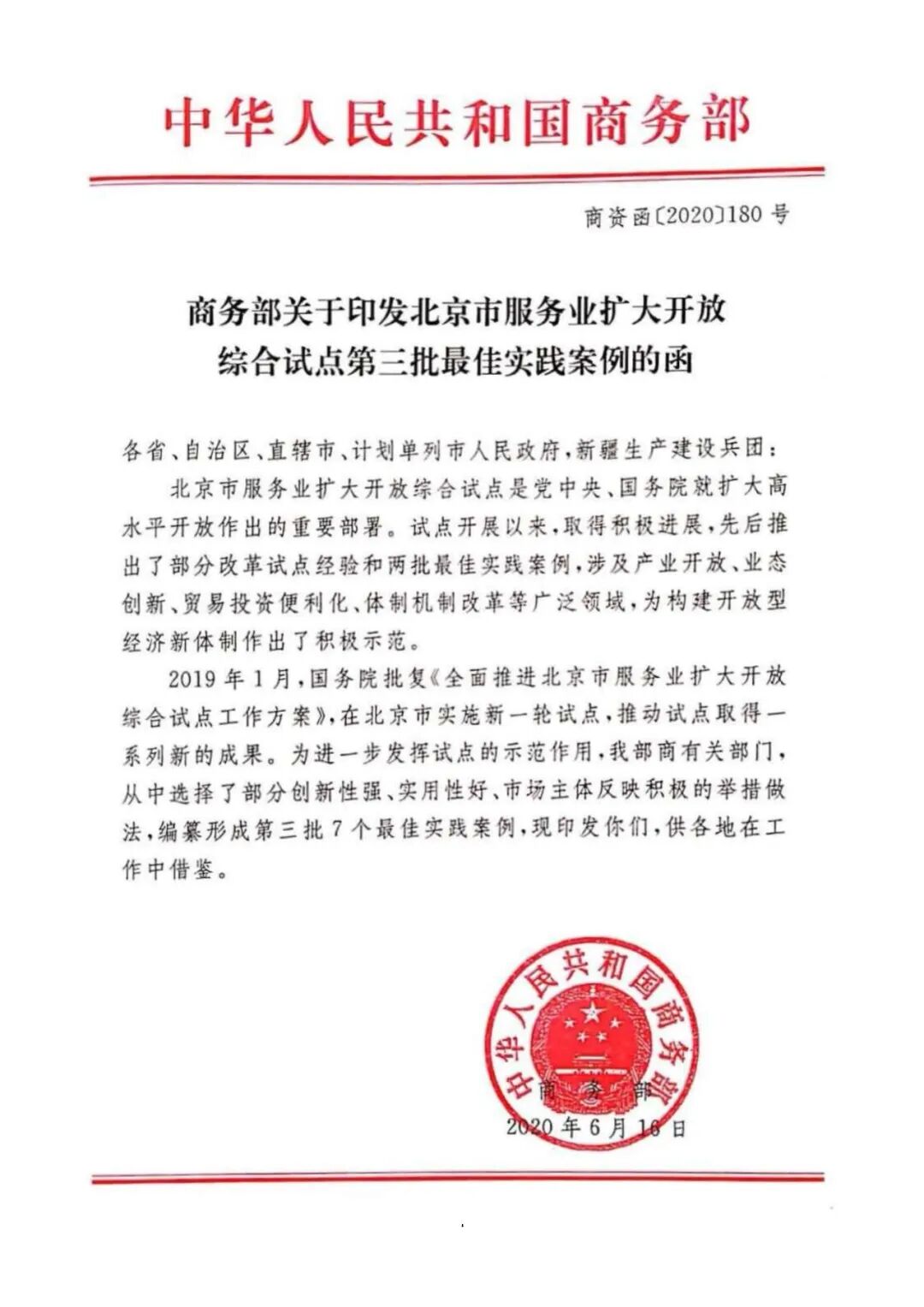 商务部推广一批北京市服务业扩大开放综合试点经验做法