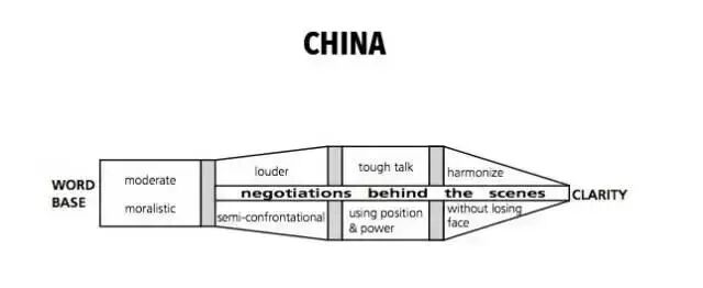 中国人:喜欢中庸之道。与客户谈判时会比较委婉,善于利用权利和地位,不轻易撕破脸,最终目的是为了达成交易。