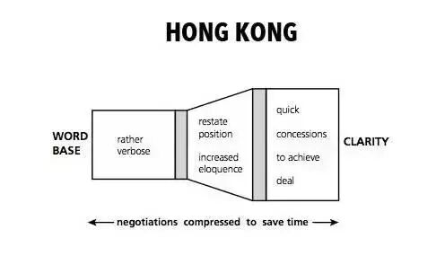 中国香港人:谈判时很怕耽误时间,在激烈的谈判过后,为了要达成交易,他们有时候也会快速做出让步。