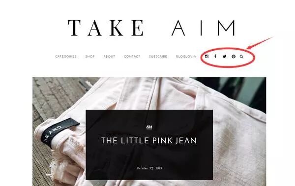 在你的网站显眼的位置放置你已有的社交渠道,你要告诉你的客户,原来你也已经其他的社交渠道方面,开设了社交账号,这样他们就能直接的点击链接到你的其他社交平台上,也会更直接的和你在社交上进行互动。如下图所示: