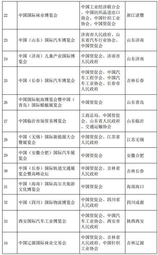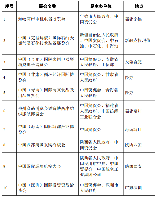 中国国际贸易促进委员会关于退出主办44个境内展会的通告