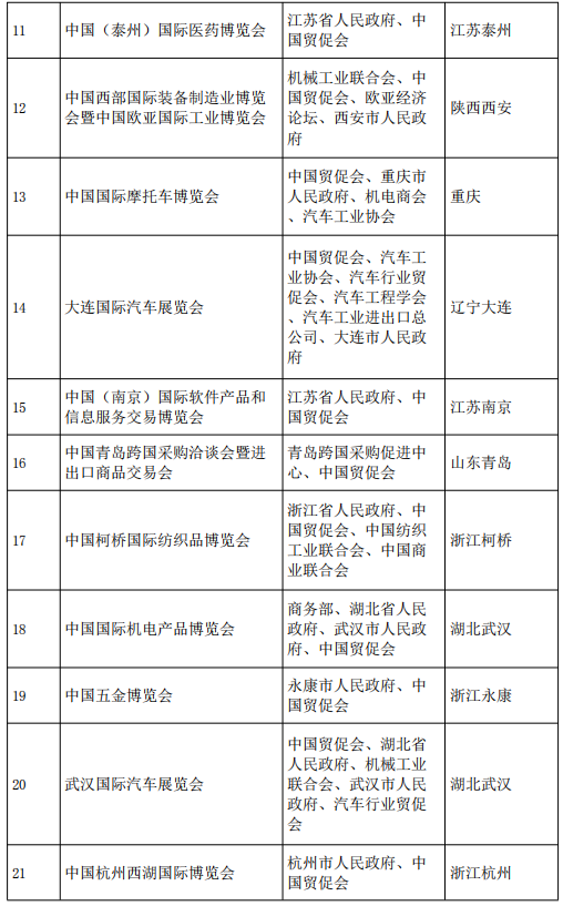 为贯彻落实国务院《关于进一步促进展览业改革发展的若干意见》精神,根据《关于省部级党政机关、人民团体举办展会清理规范的通知》(国清组函〔2014〕123号)的要求,中国国际贸易促进委员会(简称中国贸促会)自2020年起退出主办海峡两岸电机电器博览会等44个境内展会(具体展会见附件),不再担任上述展会的主办单位。由上述展会引发的一切纠纷和责任概与中国贸促会无关。