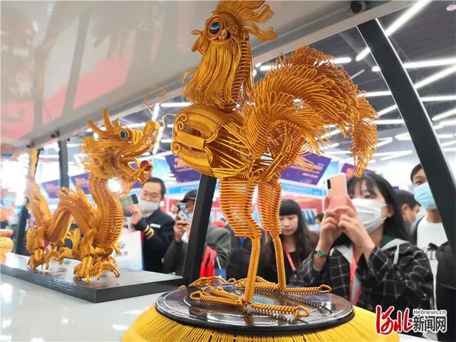 栩栩如生的骏马、花团锦簇的盆景、辗转腾挪的巨龙……在安平县工业品创新协会的展厅内,一件件巧夺天工的工艺品成为此次博览会一道独特的风景。凑近细看,才发现这些工艺品竟是由一根根金属丝组成。“赋予了独特文化创意的丝网也能成为精美的‘艺术品’。这些新产品,也受到了消费者的青睐。”展台负责人王力介绍。